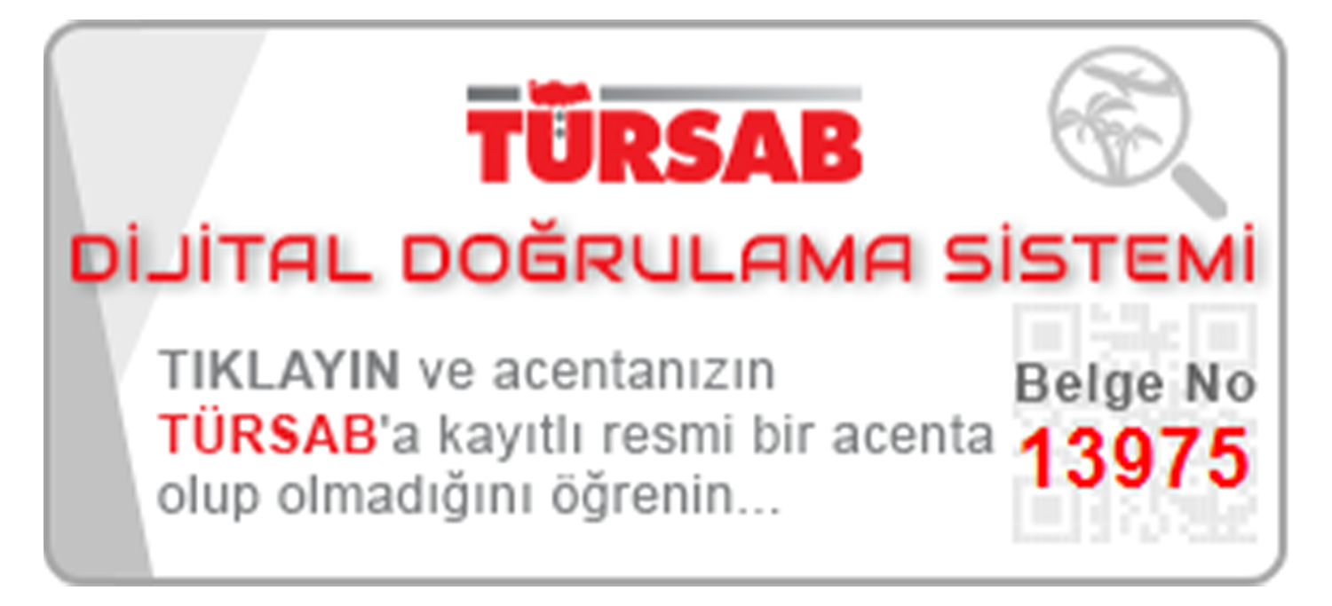 13975 belge numarasıyla TÜRSAB Dijital Doğrulama Sistemi üzerinden bizi sorgulayabilirsiniz.